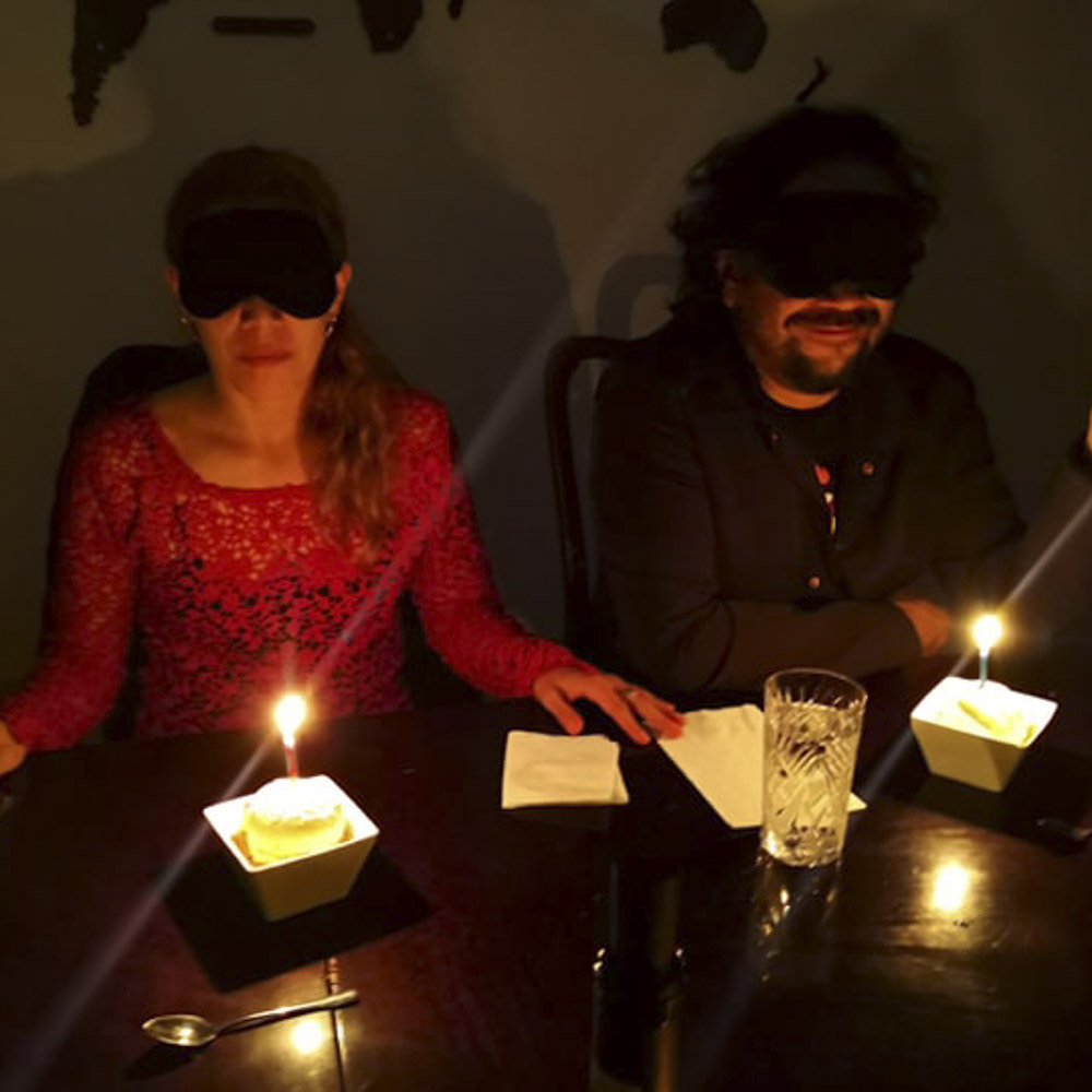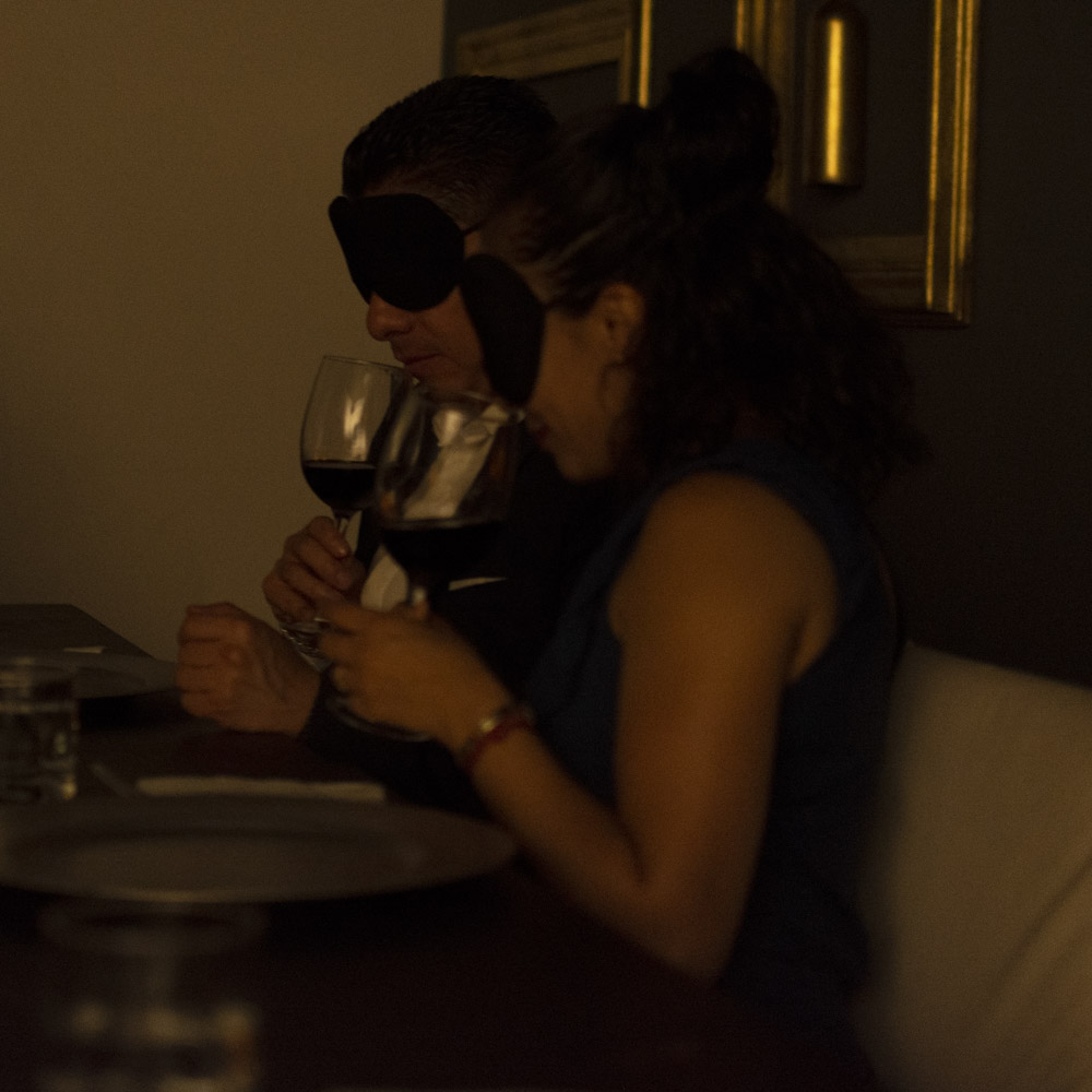 All experienced in complete darkness, where taste, aroma and texture take center stage.